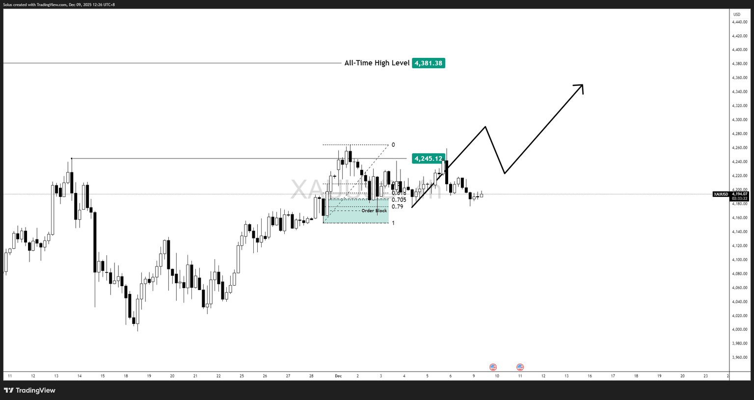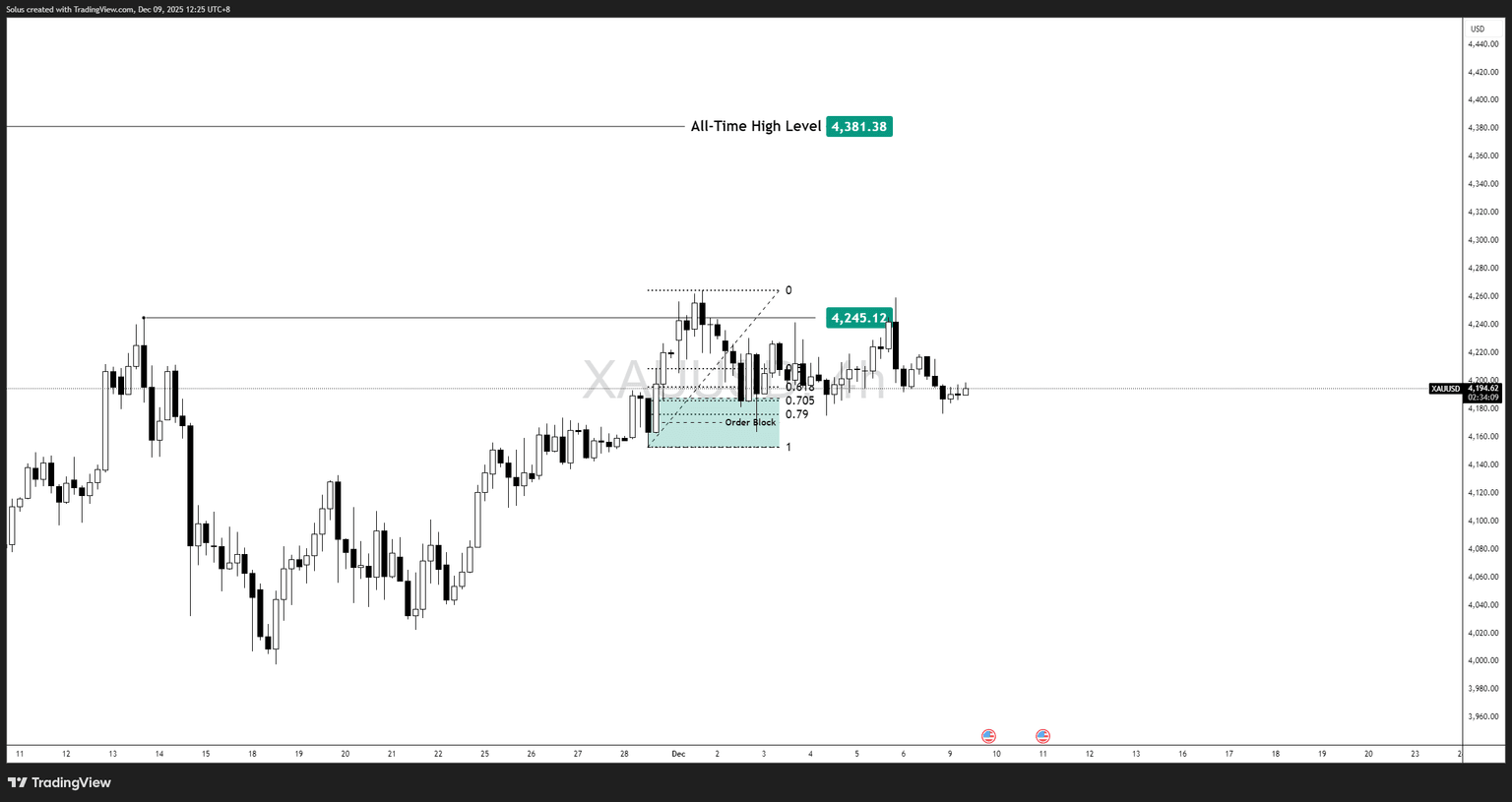 近期回调至4170-4190美元的订单区块形成清晰反弹。