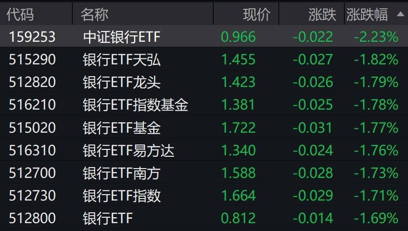 受盘面影响,银行相关ETF跌约2%。