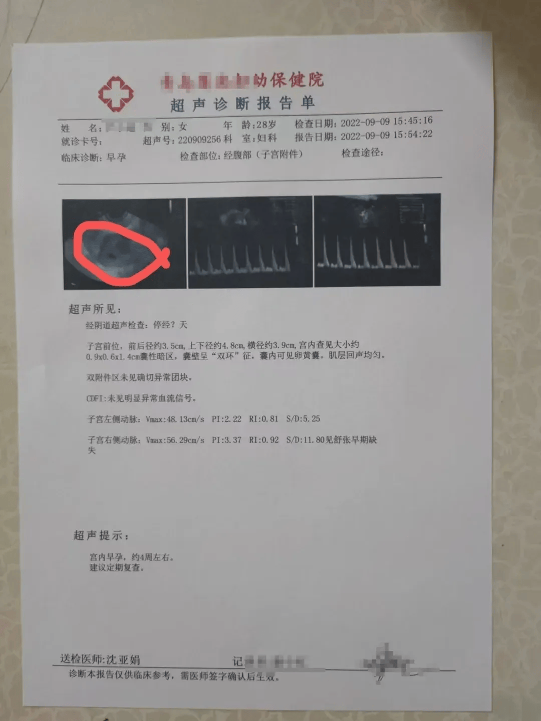 2022年9月,尹某某虚构自己怀孕并购买一张虚假的怀孕B超单发给申明以骗取信任。