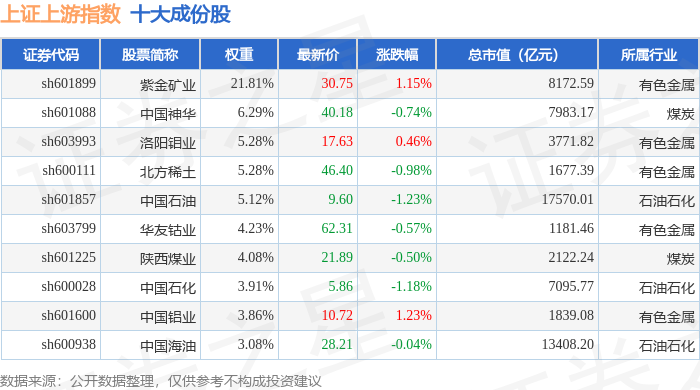 上证上游(000094)指数十大成份股详情如下: