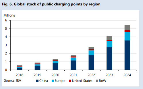 汽车行业电气化的额外收益是对充电基础设施的需求。根据国际能源署数据,2024年全球公共充电桩数量增长33%,中国贡献了21个百分点。预计电动汽车采用率的上升将需要充足的充电基础设施,这将进一步推动白银需求。