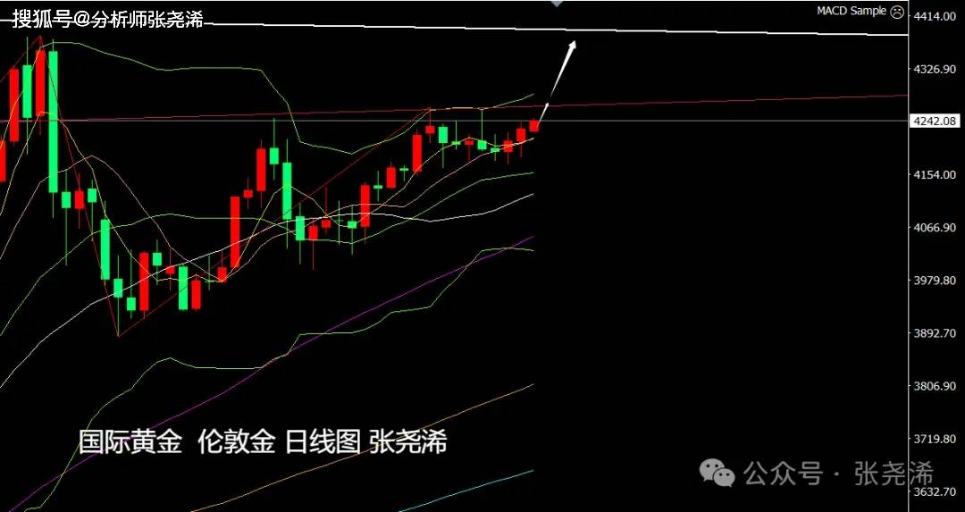日图;金价近日震荡回升,处于短期均线及布林带中轨上方,看涨前景加大,后市将依托5-10日均线支撑继续看涨为主,等待再度触及4265美元附近阻力,如持稳收阳,则有望继续上探4350美元或更高位置。