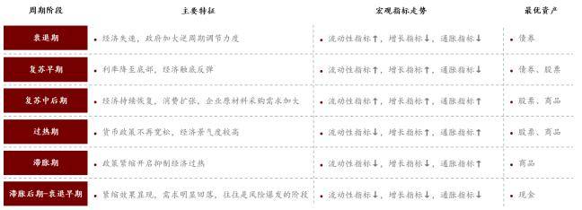 综合来看,周期状态总体对应于复苏早期阶段,相应资产表现排序为:债券、股票>商品。如果后续能够出台超预期的财政与货币政策刺激,并观察到实际政策效果显现,那么周期状态有望逐渐向复苏中期过渡,相应资产表现排序为:股票、商品>债券。