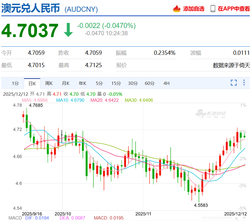 12月以来,澳元波动区间集中在4.67 - 4.69,整体涨势温和但态势稳健。