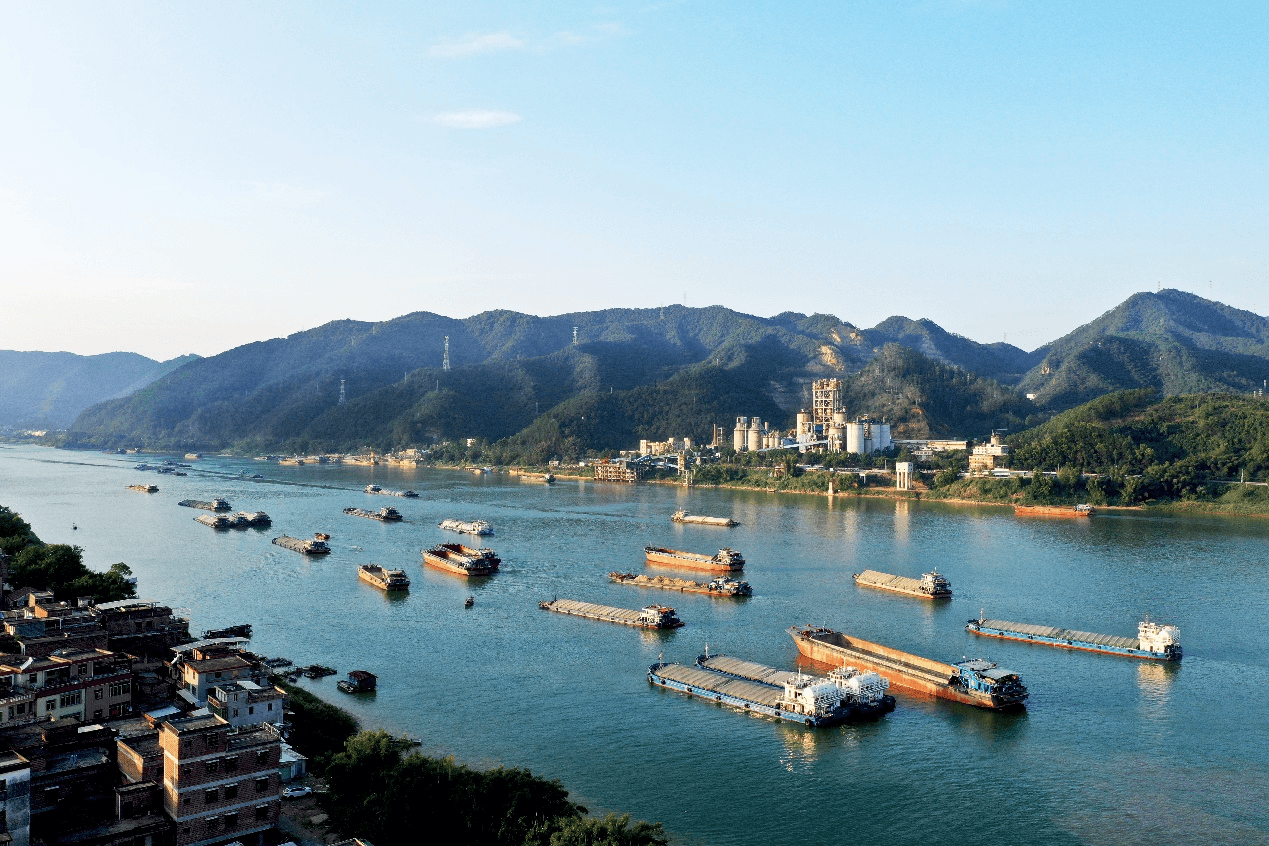 繁忙的西江“黄金水道”,图为云安区都杨镇都骑圩 李伙连 摄