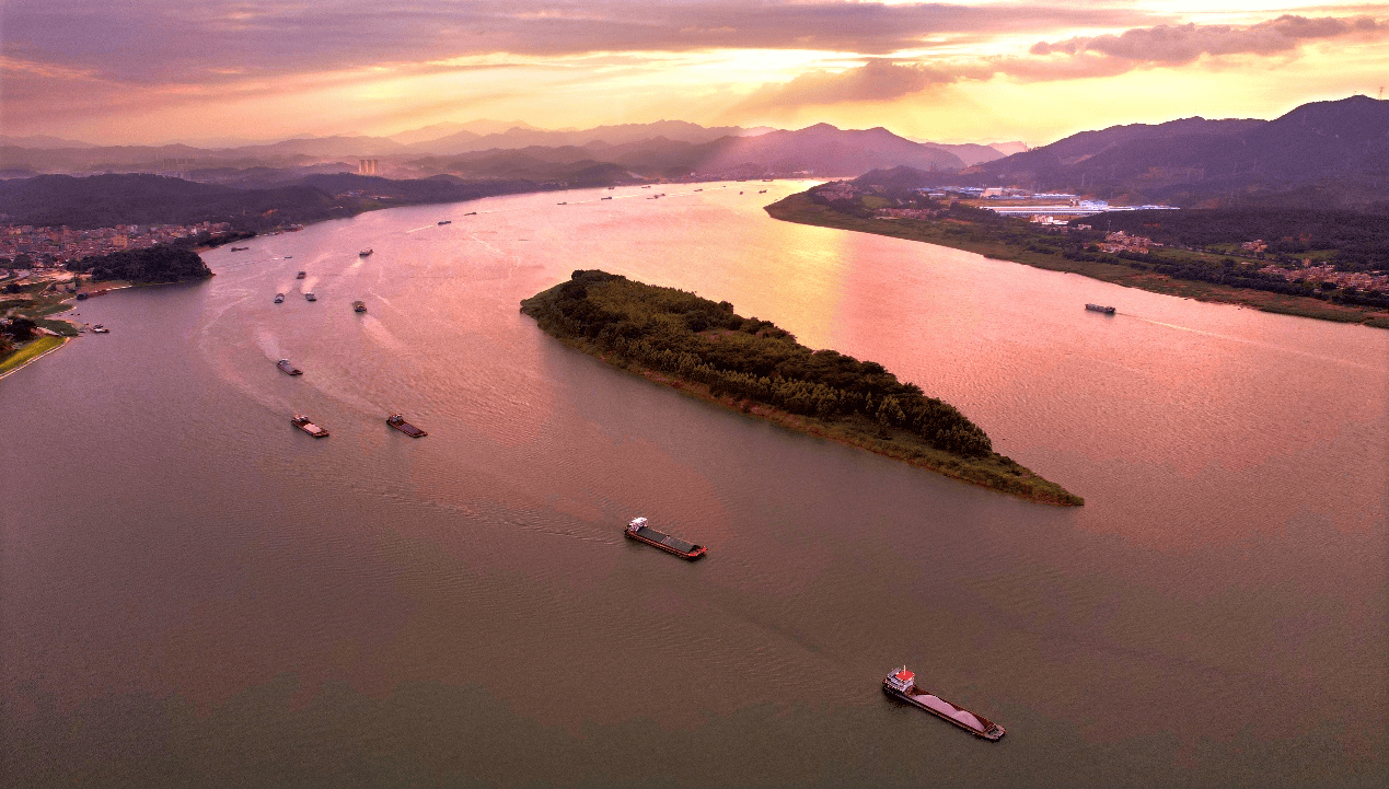 江上百舸争流。图为有“西江第一岛”之称的云浮云安区都杨镇金鱼沙岛。 刘景光 摄