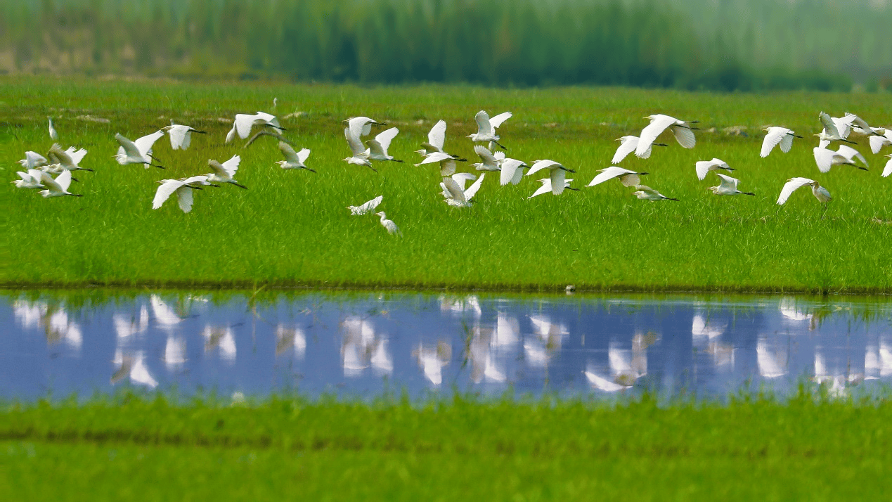 西江畔,鹤舞蹁跹。 邓银梅 摄