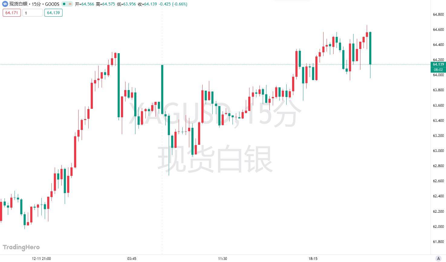 周五,白银将历史高点刷新至64美元上方。银价波动剧烈,本周已上涨约10%,这得益于美联储发出的鸽派信号。利率降低对于不生息的贵金属如白银来说是一个利好因素。