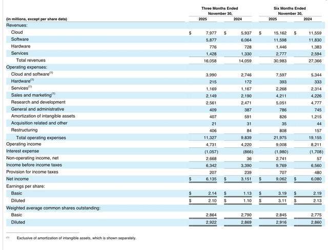 财报显示,2026财年第二财季,甲骨文实现营收160.6亿美元,同比增长14%,低于分析师预期的162.1亿美元;通用会计准则(GAAP)净利润为61亿美元;非通用会计准则下净利润为67亿美元,同比增长57%;通用会计准则每股收益为2.1美元,同比增长91%。