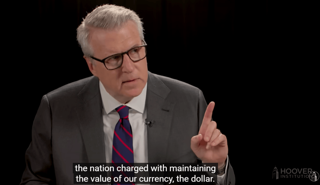 是的,所以我相信米尔顿和你刚刚传达的观点,也就是如你开场白所说,“通胀是一种选择”。确保价格稳定的职责由国会授予美联储,最近一次是在1970年代对其章程的审查中,以便有一个机构对物价负责。不要再责怪别人了。我们把接力棒交给你,中央银行。去解决它。但从最近几年的评论中,你完全不会觉得通胀是一种选择。事实上,在过去五六年大通胀酝酿期间,我们听到了关于通胀原因的什么说法?是因为普京和乌克兰。是的。是因为疫情和供应链。米尔顿听到这些会勃然大怒的。而我自己,用我自己的含蓄方式,听到这些也感到不安。这些事情确实会导致价格变动,毕竟,在市场经济中,沃尔玛的价格每天都在变。这就是市场经济运作的方式。这不是中央银行的职责去监管那些价格。但那不是通胀。那是一种商品价格水平的一次性变动。通胀是指当那种一次性价格水平变动变得自我强化时发生的情况。也就是说,更高的价格催生更高的价格。这意味着通胀最终会影响到每个家庭的餐桌和每个公司的董事会,因为你作为一个决策者,不知道价格水平会变成怎样。那不是关于普京或疫情。那是关于美联储。那是关于中央银行。恐怕近年来,这可能是因为中央银行已成为我们文化的一部分,我们有点习惯于说:“嗯,这不是我的错,是别人的错。”我认为这是米尔顿在最近时期最会感到愤怒的地方。中央银行可以实现它想要的任何价格水平,任何通胀水平。我们可能不喜欢他们实现的方式,但他们应该责怪别人的想法,我认为这与良好的经济历史背道而驰。