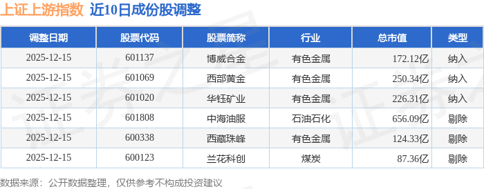 近10日内上证上游(000094)指数成份股做了调整,新纳入了3只股票,剔除了3只股票。