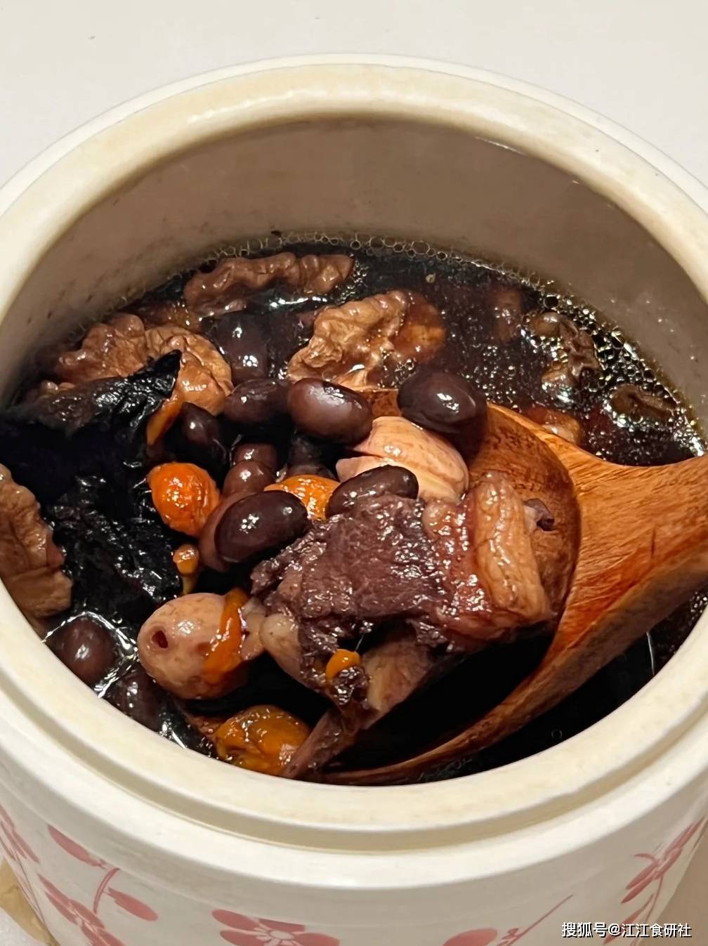 这汤色是深沉的茶褐色,看着就觉得很“补”。味道非常醇厚,黑豆的香、核桃的润、黄精的甘,层层叠叠。喝完后,嘴里会留有淡淡的回甘。