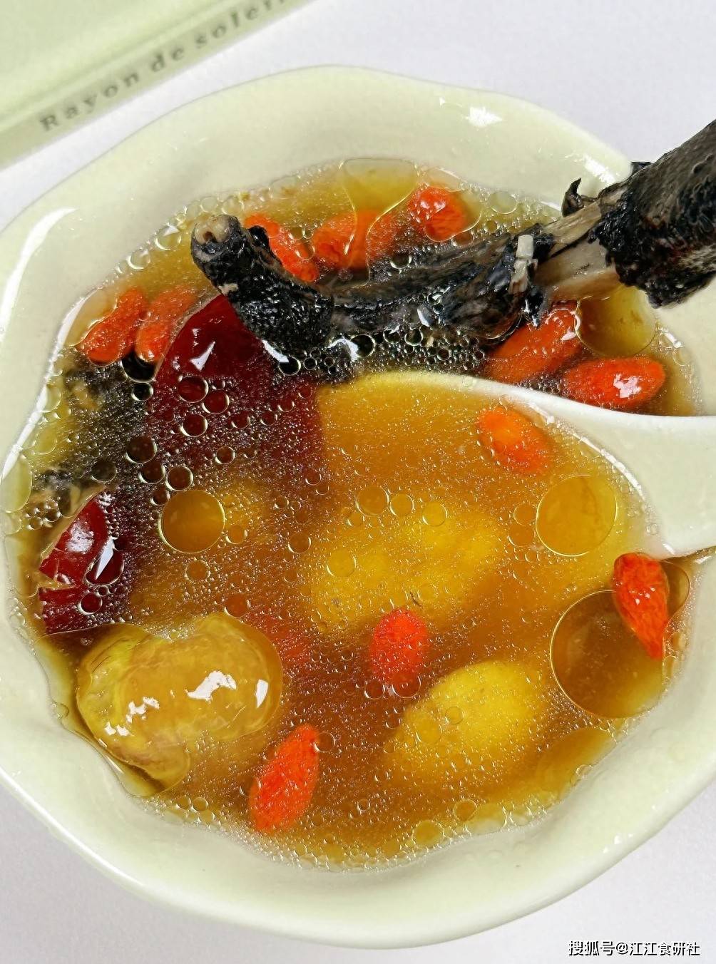 汤色是清澈的金黄。喝一口,最先感受到的是板栗的甘甜,然后是乌鸡的鲜醇。红枣的甜味已经化在汤里,枸杞则添了一抹亮色。