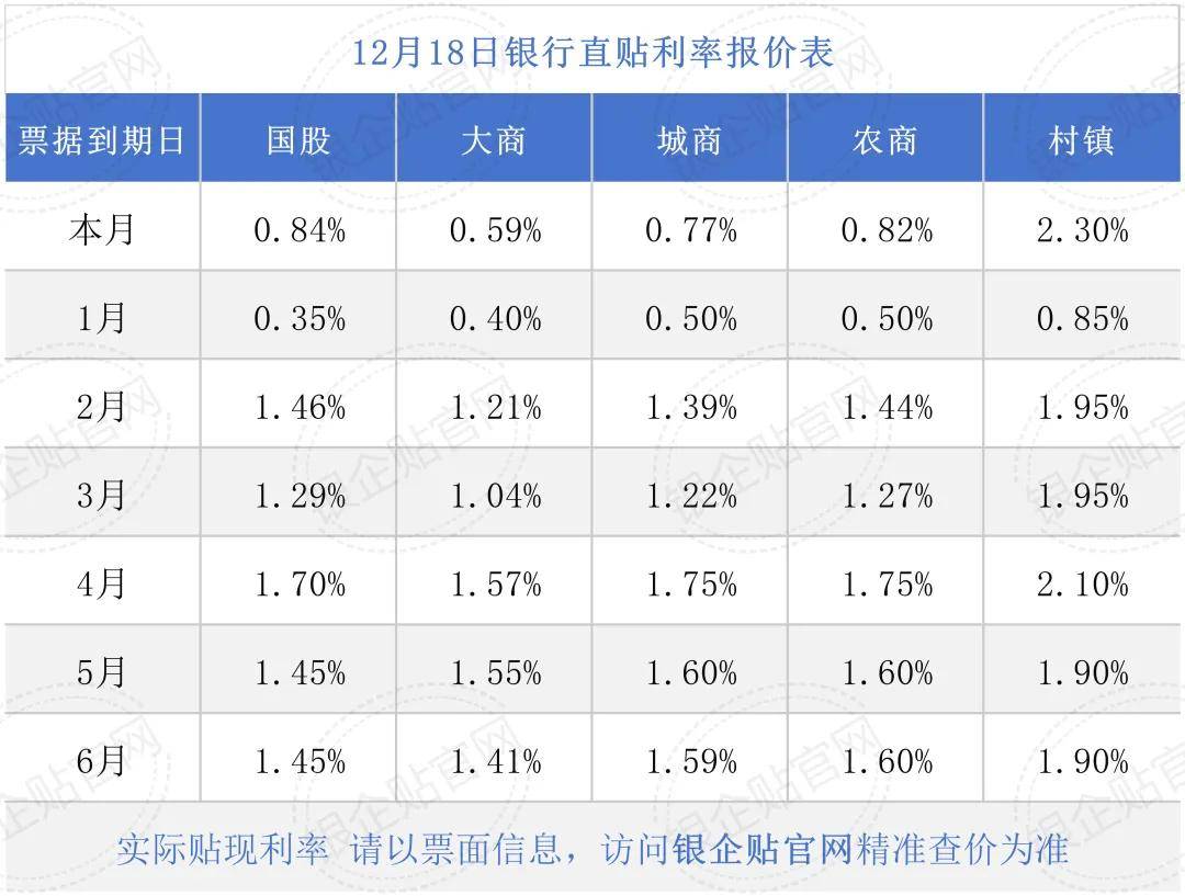 12 月 18 日,票据市场整体维持活跃,承兑汇票贴现利率在不同期限、不同银行类型间继续分化运行。从银企贴官网 50–100 万金额区间直贴报价来看,主流银行报价基本稳定,短期票仍具优势,中长端利率也就是半年期(6个月承兑汇票)整体处于相对高位。
