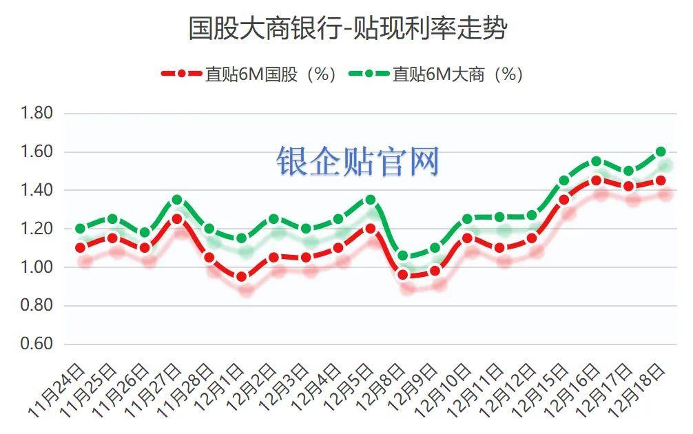 从近阶段 6M 直贴走势看,国股与大商利率同步运行,12 月中旬以来呈现先企稳、再缓慢抬升的特征。