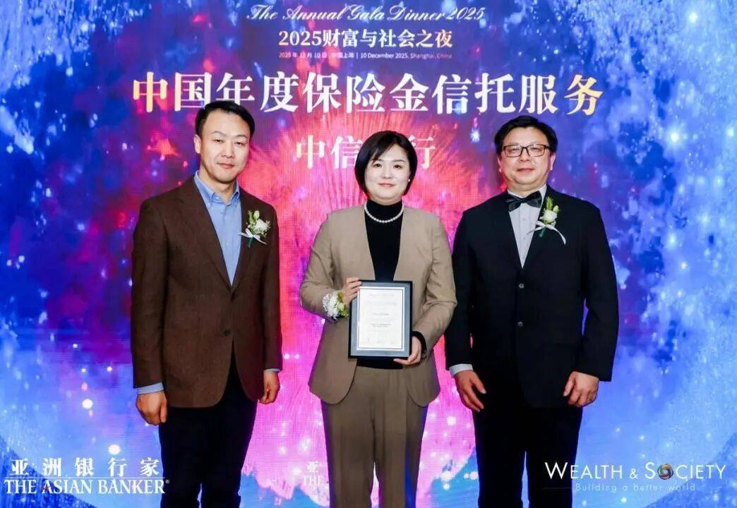 2025年12月10日,上海——由亚洲银行家举办的2025年度财富与社会之夜暨颁奖典礼在上海隆重举行,当晚共颁发“财富与社会亚太卓越亚太卓越私人银行(财富)中心”、“财富与社会产品与服务成就奖”、“财富与社会商业成就奖”、“财富与社会影响力成就奖”四大类共计20个奖项。中信银行凭借有温度的私人银行服务体系,荣获“中国最佳私人银行国际化子女教育支持”、“中国年度保险金信托服务”、“中国卓越财富传承私人银行中心”三项大奖。