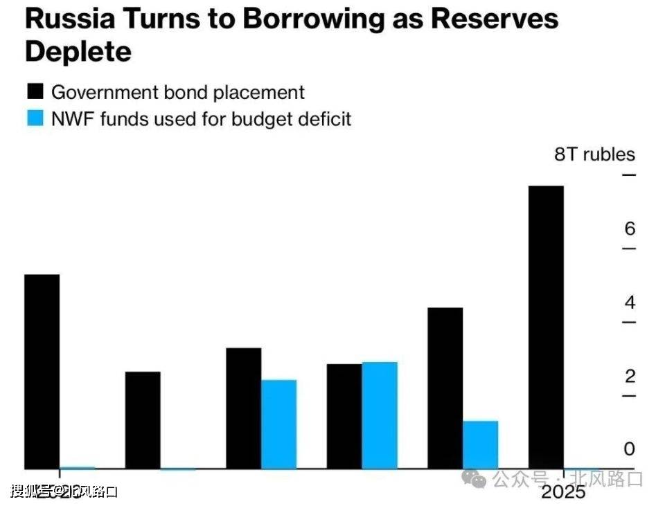 由于俄罗斯外汇储备枯竭,加上军费开支激增30%-60%,以及包括石油和天然气在内的大宗商品收入大幅下滑,导致预算赤字扩大,俄罗斯被迫转向创纪录的借贷,仅2025年一年就发行7.9万亿卢布的债券,高利率(16.5%)使得偿债成为俄罗斯五大预算支出之一,与军费开支不同,这部分支出无法削减。