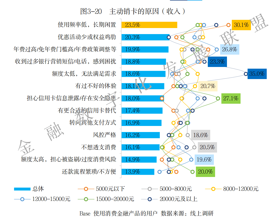 那谁还在用信用卡?据《消费金融数字化转型主题调研报告2025》数据,信用卡消费支付行为信息显示,信用卡月均交易10.4笔、5326元,中年及高收入是主客群。关于主动注销信用卡的原因,合计31%的人提及不想透支消费或者担心过度消费。