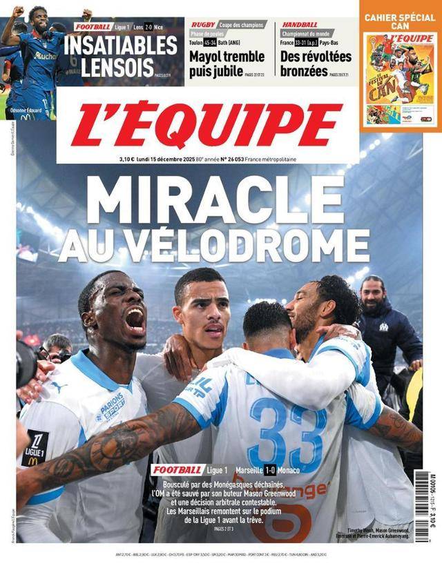 12月12日,25-26赛季法甲第16轮,格林伍德又一次刷新进球数,第82分钟接到赫伊别尔助攻冷静推射得分,攻入1-0致胜进球!