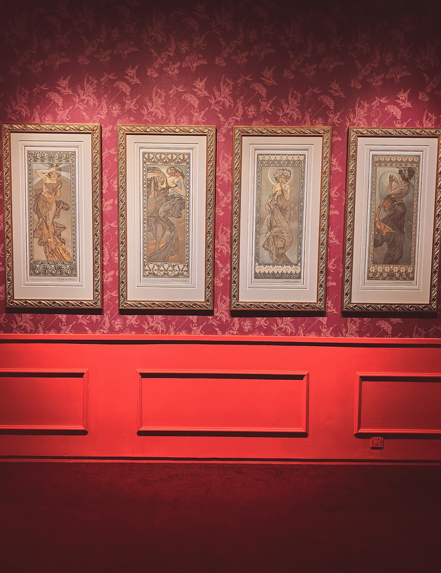 站在那些著名的商业海报和装饰面板前,比如经典的《黄道十二宫》 、《四季》系列,真的会被细腻的线条和温柔的色调美到屏住呼吸。