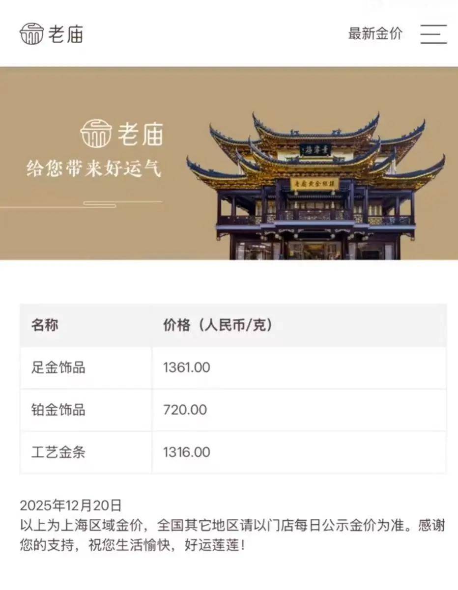 据财联社消息,12月20日11时,老凤祥黄金足金饰品报1362元/克,较昨日上涨6元/克;老庙黄金足金饰品报1361元/克,较昨日上涨5元/克;周生生足金饰品报1359元/克,较昨日上涨4元/克。