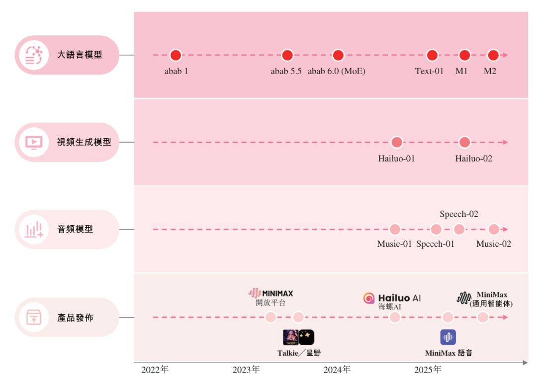视频生成方面,2024年8月发布的Video-01模型及海螺AI产品已达到当时业界顶尖水平;2025年6月推出的升级版Hailuo-02,在权威的Artificial Analysis 视频评测中位列全球第二,累计生成视频超5.9亿个。