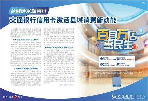在激活改善型消费层面,交通银行信用卡针对家电数码、家居家装、汽车消费等品质升级需求,横向整合政府补贴、分期免息、支付立减等政策工具包,纵向发挥信用卡产品的场景适配优势,充分释放县域消费升级潜力。