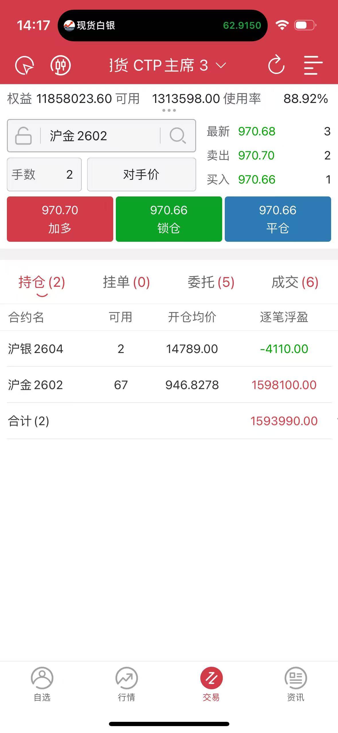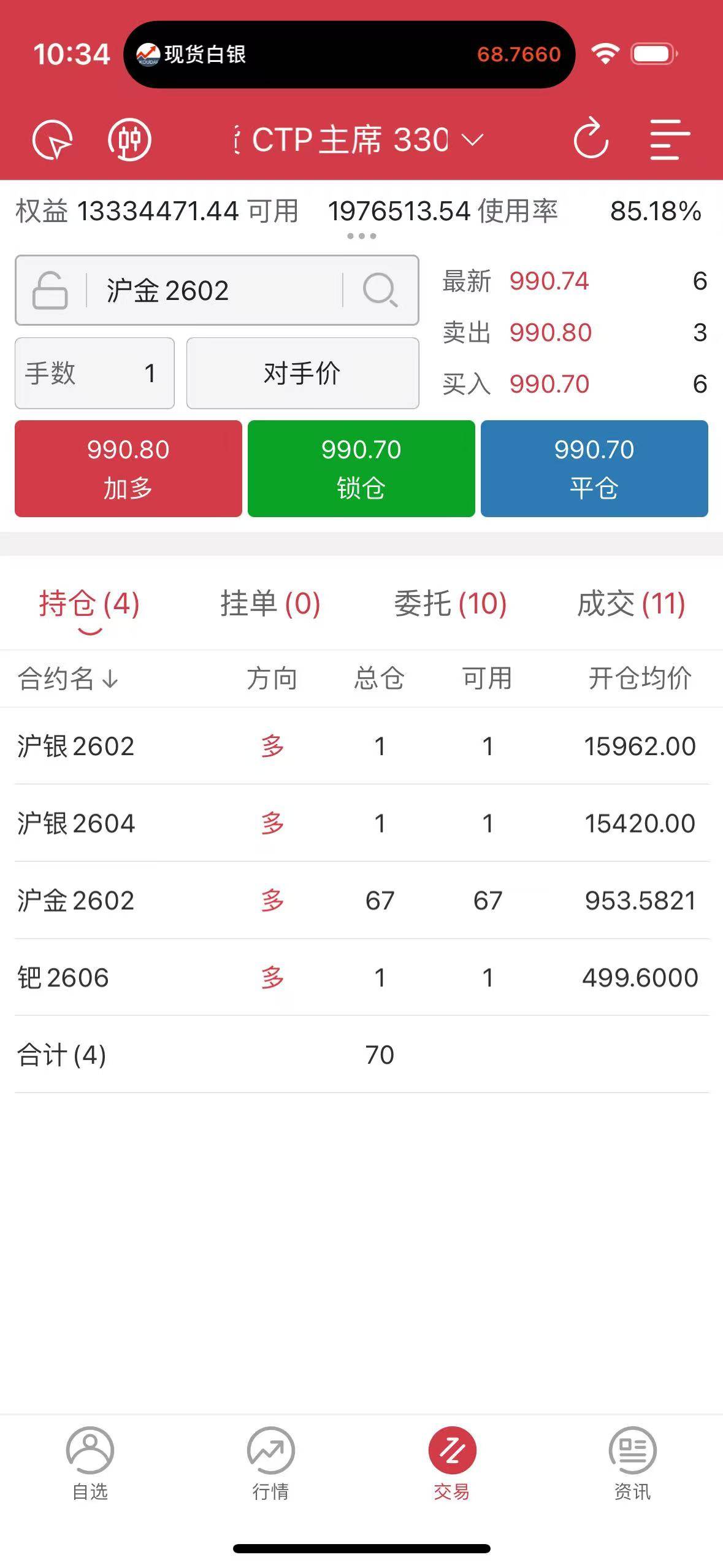 很少贴图,贴个团队期货金银情况,两个截图,同一个账户,第一张截图是月初的,第二张截图是今天的