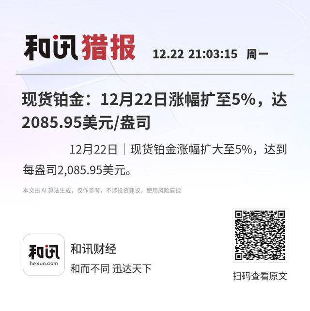 12月22日|现货铂金涨幅扩大至5%,达到每盎司2,085.95美元。