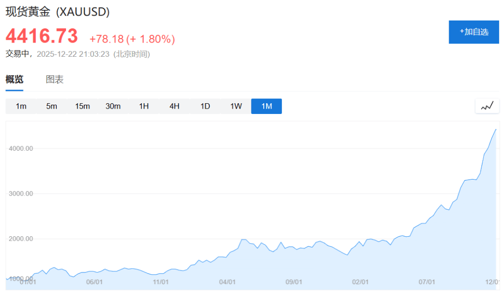与此同时,现货黄金日内涨幅达2.0%,报4425.49美元/盎司。
