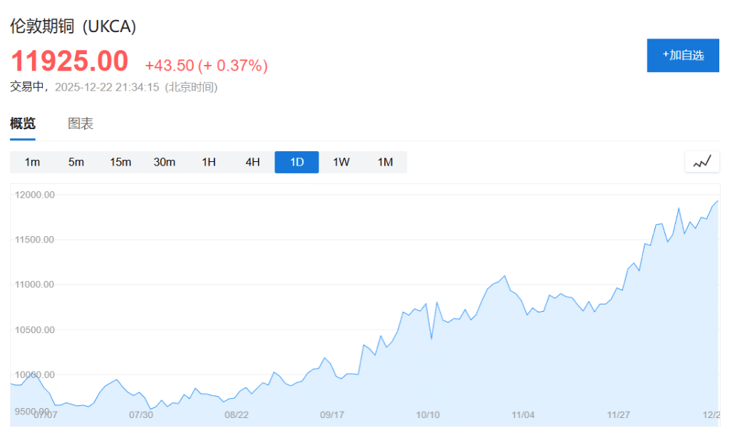 而作为全球经济“晴雨表”的铜,周一价格一度逼近每吨1.2万美元,刷新历史新高。自去年10月以来,铜价已多次改写纪录,背后是供给扰动、库存紧张与政策预期的叠加。