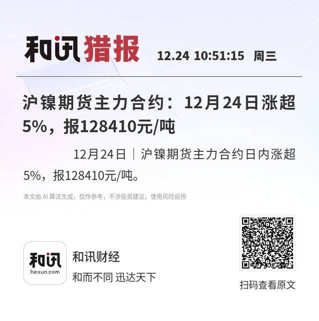 12月24日|沪镍期货主力合约日内涨超5%,报128410元/吨。