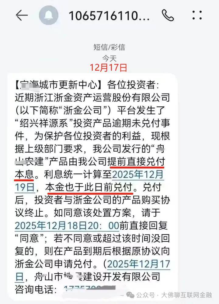 12月中下旬开始,因受延期地产债项目影响,通过某金中心发行的多只非标城投债,开始通知投资人提前兑付本息。相关产品投资人确认兑付方案后,目前也已收到全额本息。