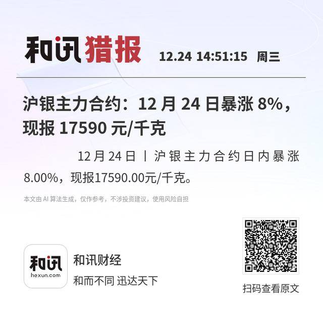 12月24日丨沪银主力合约日内暴涨8.00%,现报17590.00元/千克。
