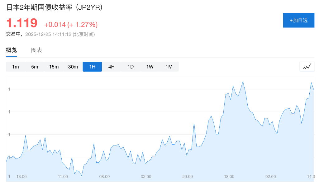 日本2年期国债收益率上行至1.119%,日本5年期国债收益率上行1BP至1.5%。