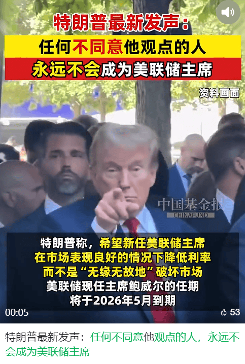 鲍威尔的任期将于明年5月结束,特朗普此番表态信号明确,显然要钦点一位愿意推动大幅降息的亲信上任,完成鲍威尔一直以来抗拒的任务。