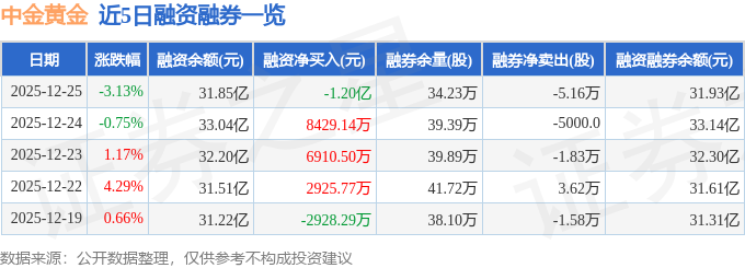 中金黄金(600489)12月... 证券之星消息,截至2025年12月25日收盘,中金黄金(600489)报收于23.2元,下跌3.13...