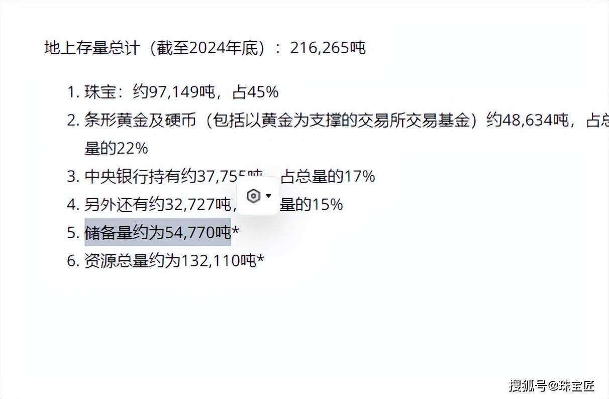 1、已开采的“地上库存”:指人类历史上已开采并留存于地表以上的所有黄金;