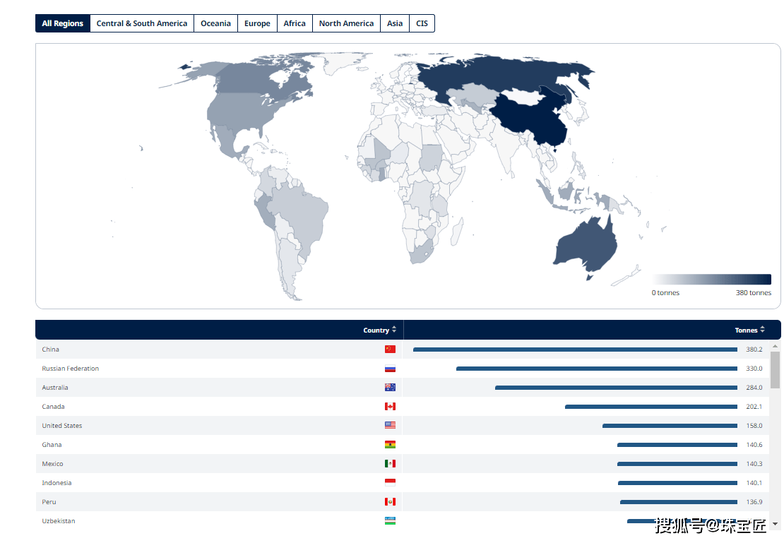 这类储量相对明确,根据世界黄金协会的数据,全球储备量总计约 5.4万吨,并随勘探进展持续更新。