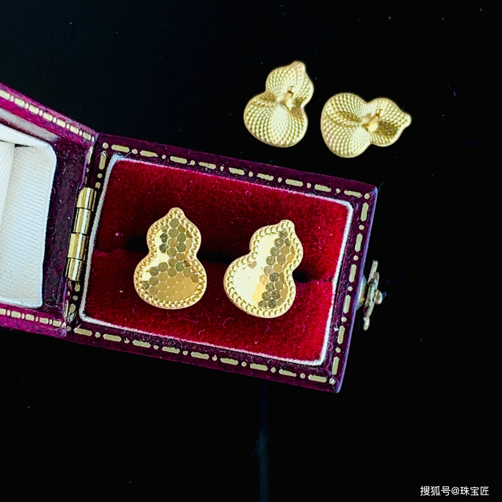 爆闪~足金999龙鳞纹碎碎冰葫芦耳钉 zhubaoj02在售