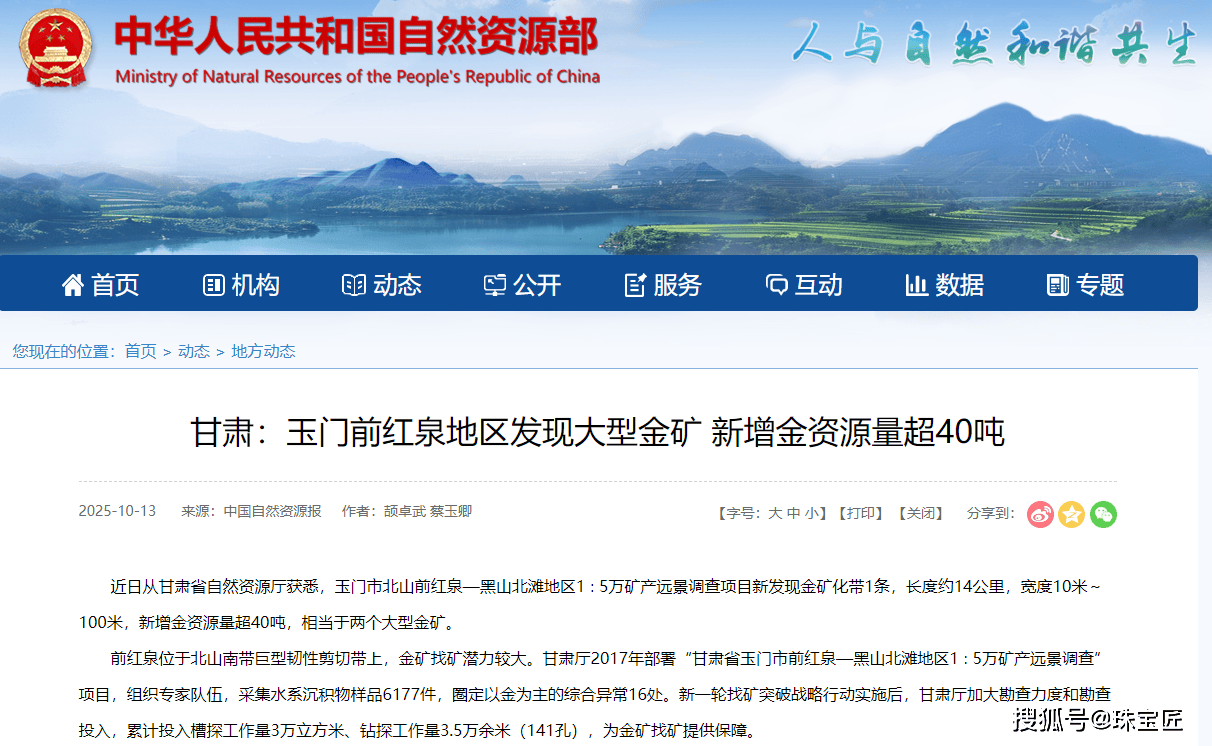 今年10月,在甘肃省玉门市前红泉—黑山北滩地区,又发现一处大型金矿,新增金资源量超40吨,规模相当于两个大型金矿的资源量。