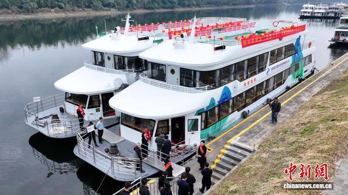中新网桂林12月29日电(杨宗盛)12月29日,在广西桂林漓江风景名胜区磨盘山码头,随着两艘刚建造好的新能源(直翼舵桨)游船在漓江下水试航,标志着漓江流域向绿色智能航运升级迈出实质性一步。