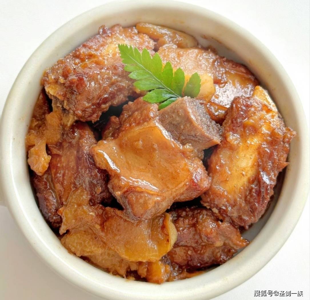 7. 放入苹果块,继续炖煮15 - 20分钟,至排骨熟透、苹果软烂,加入盐调味,大火收汁即可。