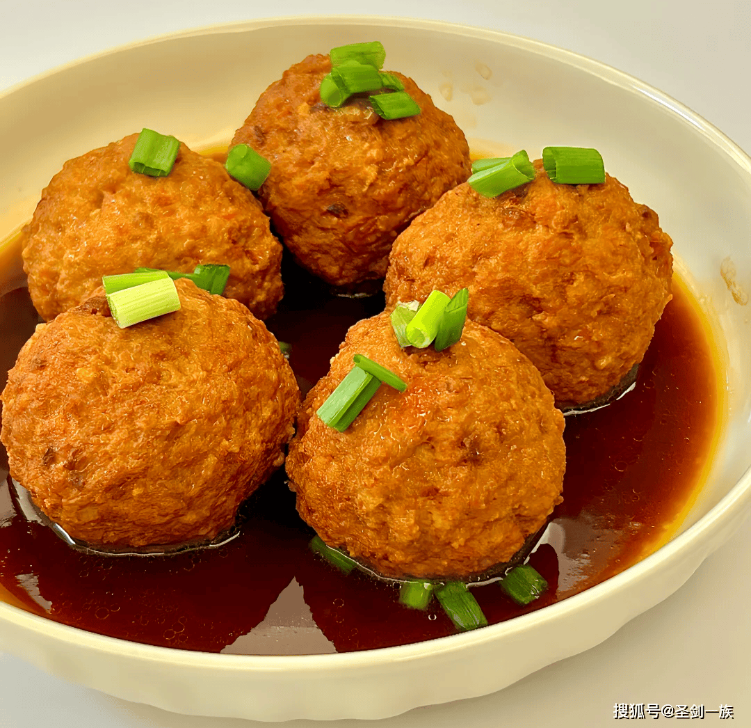 4. 收汁装盘:大火收汁,淋在肉丸上