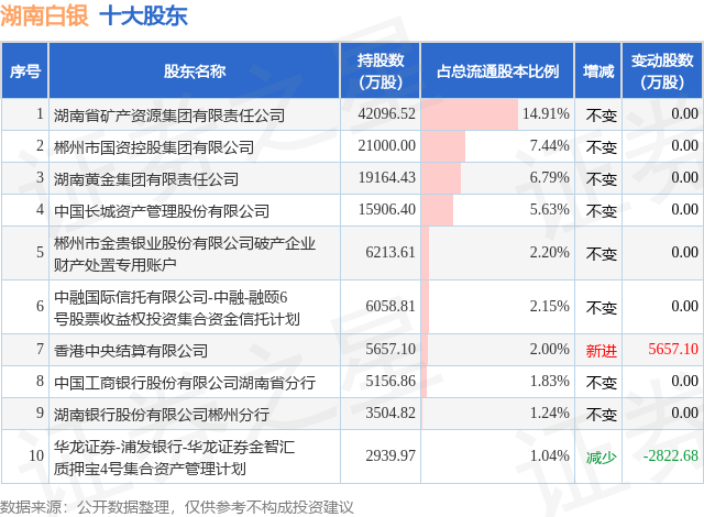 根据湖南白银2025年三季报公布的十大股东详情如下: