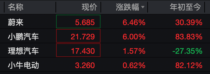 此外,新氧、正业生物、亿珈通科技、文远知行等涨超3%,亿航智能、禾赛科技、迅雷等涨逾2%,爱奇艺、声网、网易、理想汽车、小马智行等涨超1%。