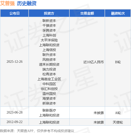 证券之星消息,根据天眼查APP于12月26日公布的信息整理,上海艾普强粒子设备有限公司B轮融资,融资额近10亿人民币,参与投资的机构包括联新资本,千骥资本,孚腾资本,上海科创,太平洋保险,上海联和投资,上海信投,联升资本,风物资本,道禾长期投资,瑞力投资,松青资本,上海嘉定工业区,中科园区,徐汇科创投,温州国投,海望资本,新鼎资本。