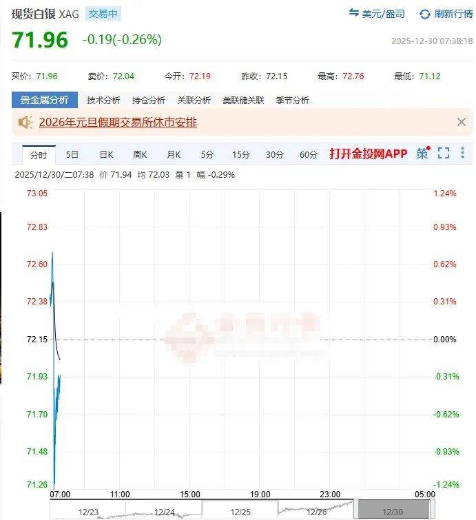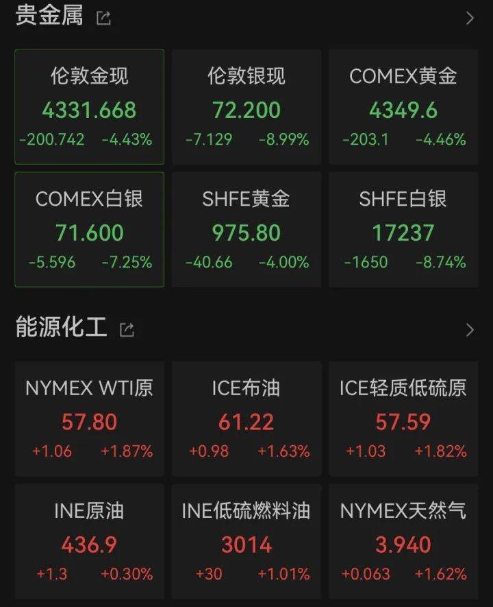 截至北京时间12月30日5:50,伦敦银现跌8.99%,伦敦金现跌4.33%。