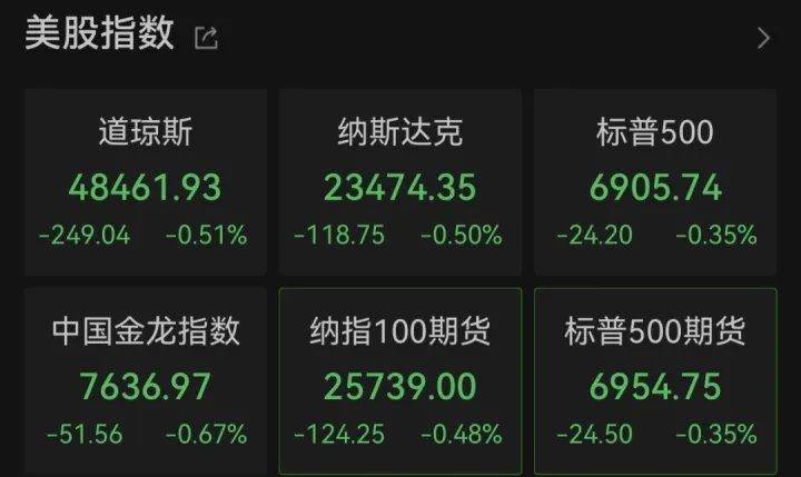当地时间12月29日, 美国三大股指全线收跌,道指跌0.51%,标普500指数跌0.35%,纳指跌0.5%。