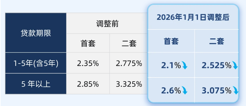 据“上海公积金微信公众号”12月31日消息,2025年5月8日前发放的未到期个人住房公积金贷款,自2026年1月1日起,将执行调整后利率。调整后,5年以下(含5年)和5年以上首套个人住房公积金贷款利率分别为2.1%和2.6%,5年以下(含5年)和5年以上第二套个人住房公积金贷款利率分别为2.525%和3.075%。本市将于2026年1月1日起统一批量下调,无需借款人申请。